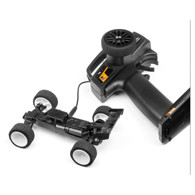 Echipată cu roți din material microporos veți avea aderență perfectă pe mochetă, gresie,parchet. Transimisia este tracțiune spate si direție proporțională folosită si la modelele de scară mare.